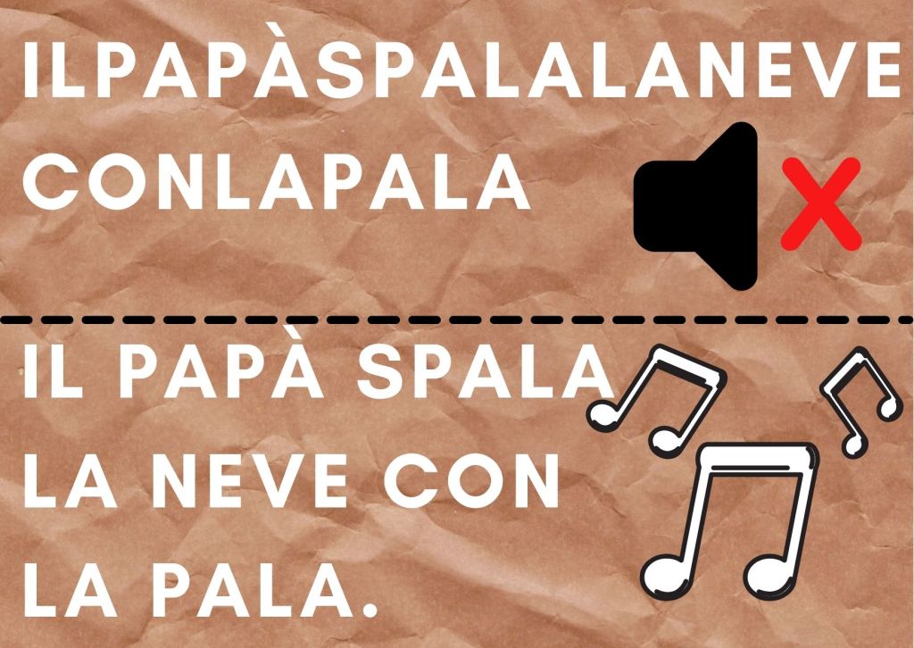 ALL’INTERNO DELLA FRASE LE PAROLE SONO SEPARATE L’UNA DALL’ALTRA, GLI SPAZI CORRISPONDONO A DELLE PAUSE QUANDO LEGGIAMO.