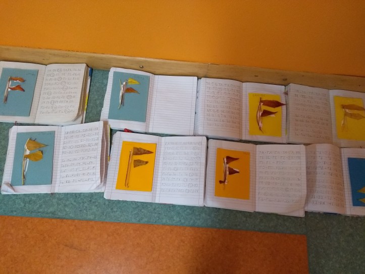 Il quaderno di scrittura ci ha accompagnato per la prima parte dell’anno, seguito successivamente dal quaderno del corsivo. Il formato scelto è un A5 più facile da maneggiare e più comodo per la scrittura perché i bambini non devono allungarsi per scrivere nella parte alta del foglio e possono così mantenere una postura corretta. Per renderlo speciale abbiamo costruito noi la copertina utilizzando un foglio A3.