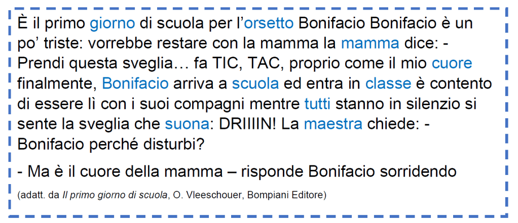 1. Leggete la storia di Bonifacio e mettete questo segno / ogni volta che è necessario un punto.