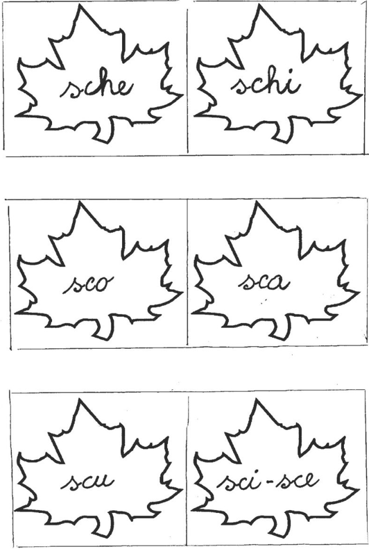 Ritagliate le foglie, girate la pagina del vostro quaderno in orizzontale e incollate le foglie raggruppando i suoni dolci a sinistra e i suoni duri a destra, pronunciateli bene ad alta voce. Colorate la foglia che contiene i suoni dolci in rosso, quelle che contengono suoni duri in giallo. Cosa notate?