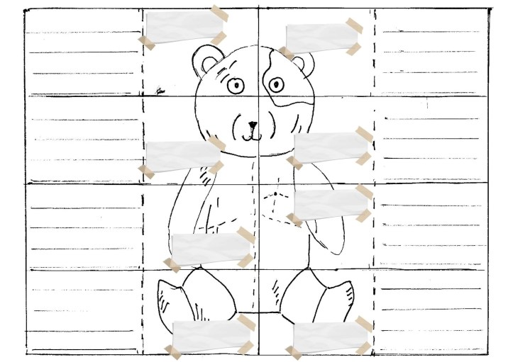 5.Tagliamo lungo le linee nere e pieghiamo lungo quelle tratteggiate. Otterremo un simpatico puzzle per ricordare la storia e le emozioni che ci ha regalato.