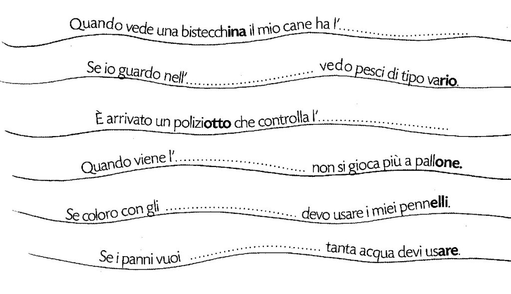 A coppie trovate le parole che completano le rime. ATTENZIONE! Devono contenere CQU!