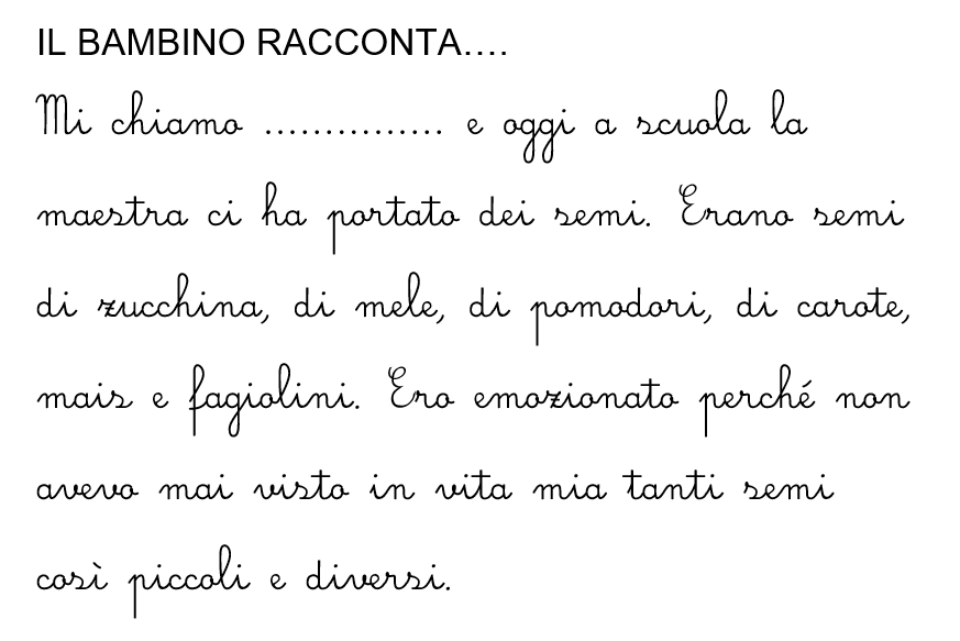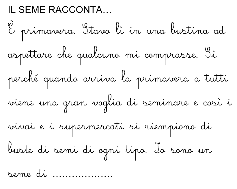 - Raccontate la storia del seme che avete scelto mantenendo il punto di vista.