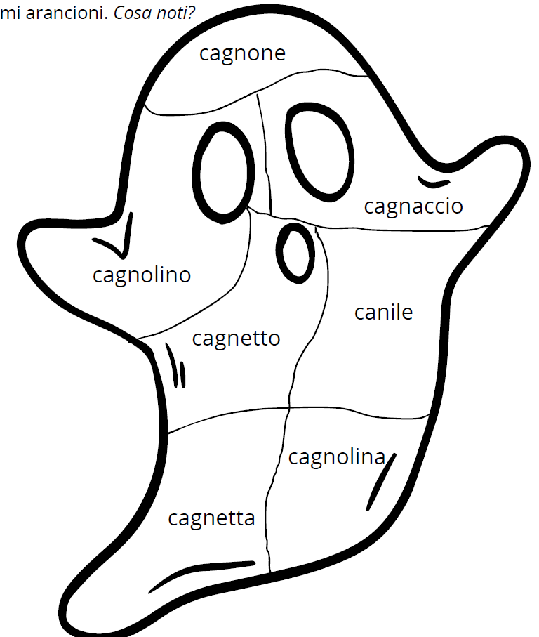 Proviamo ora a disegnare i nomi che avete colorato di arancione. Cosa notate? Mettete insieme le idee e scrivetele sul vostro quaderno.