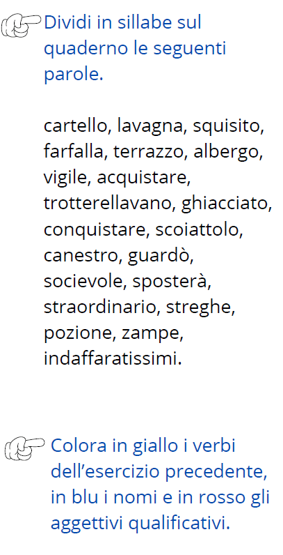oggi ripassiamo la divisione in sillabe. Raccogliamo le idee e proviamo a scrivere le regole che ci ricordiamo su un foglio di carta pacco. Una volta che avete raccolto tutte quelle che ricordate, proviamo a giocare.