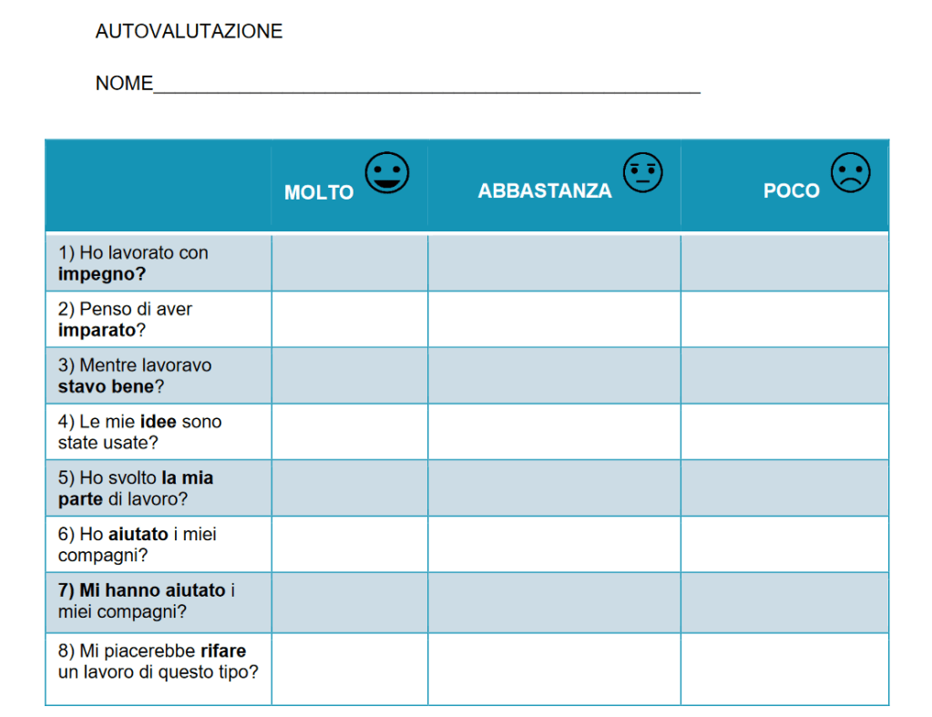 Che ne pensate? E’ tempo di valutazioni! Compilate la tabella qui sotto e condividetela con i compagni.