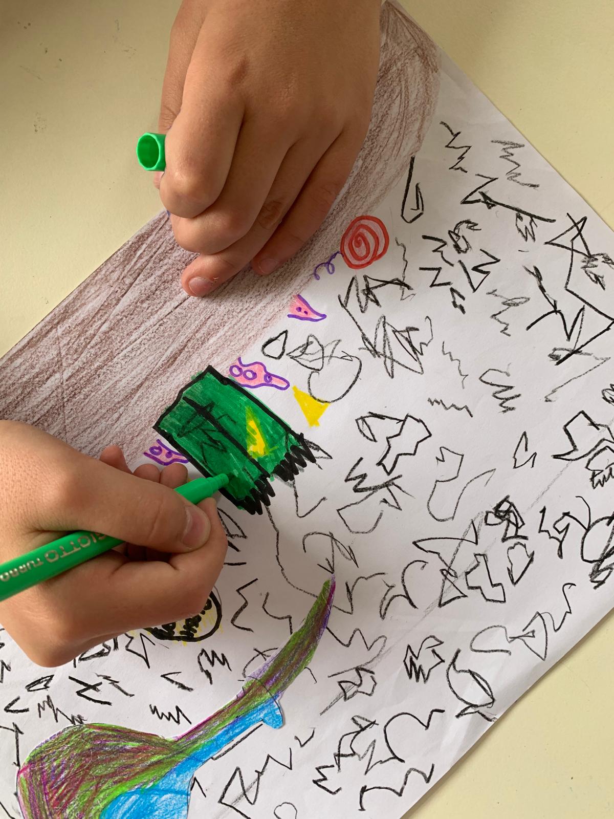 Nel nostro caso la storia è cominciata dalla creazione di due personaggi. I due gruppi classe sono partiti dal disegno e hanno dato vita a Max, un mix di animali, e Leo un ragazzo di 13 anni. Entrambi hanno un oggetto magico perché questa è stata la richiesta iniziale e cioè attribuire al proprio personaggio un oggetto speciale.