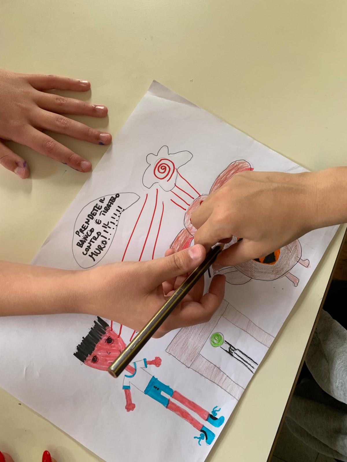 E’ stata progettata quindi una lezione di esercizio/rinforzo sull’uso dei discorsi diretti che ci ha portato ad un primo approccio a quelli indiretti e, in biblioteca, ad interessanti appuntamenti di lettura legati al fumetto e alle descrizioni.