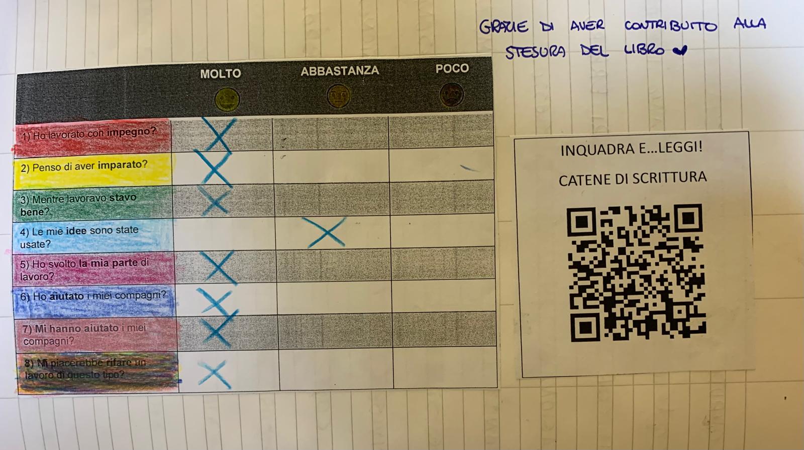 Il lavoro si concludeva poi sempre con la condivisione nel grande gruppo, per unire le diverse parti svolte, discutere, ragionare e far prendere vita al testo, affinché non fosse solo l’unione delle singole parti prodotte dai piccoli gruppi, ma diventasse qualcosa di più.