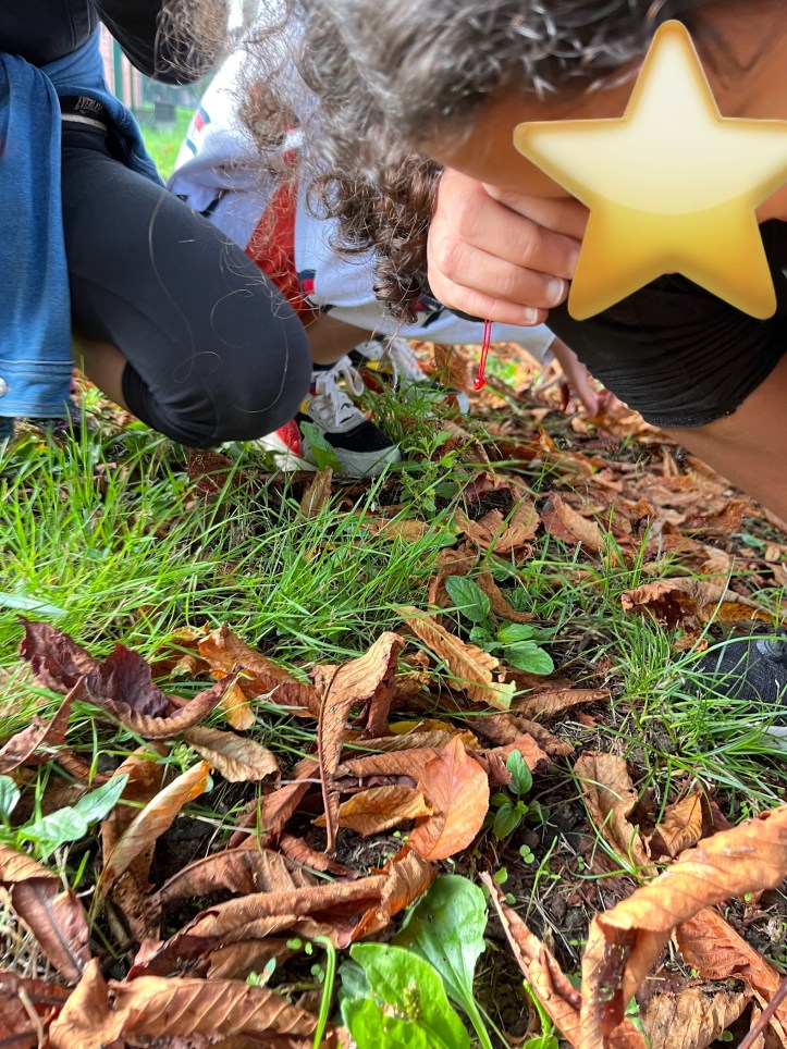 - Un gruppo guarda il prato attraverso il cerchio e un gruppo guarda l’orto.
