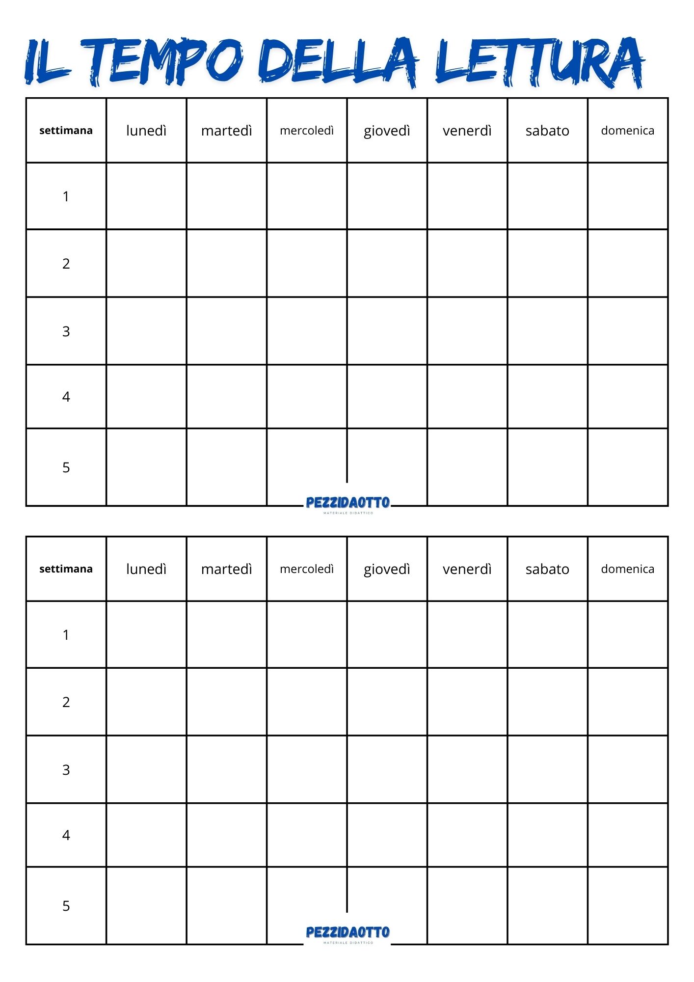 Sul nostro taccuino del lettore aggiungiamo una griglia per registrare i nostri tempi di lettura. Eccola!