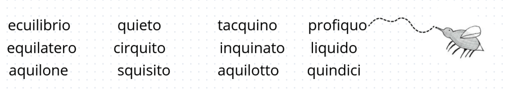 Scrivete ora sulla lavagna una lista di parole che non seguono la regola della QU+vocale.