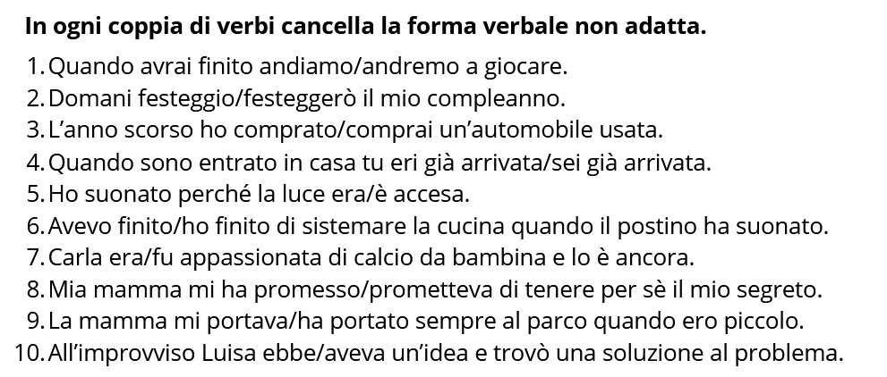 Aiutandovi con i nostri coniglietti, analizzate i verbi che avete scelto. Avrete 15 minuti per completare il gioco. Ogni scelta corretta sarà un punto. Per ogni verbo analizzato correttamente 2 punti.