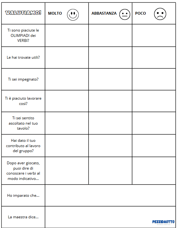 Prima di premiare i vincitori, proviamo a capire com’è andata questa esperienza. Completate la griglia qui sotto e condividetela con i compagni.