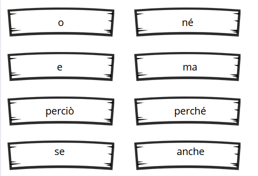 Giochiamo! Ogni tavolo riceverà dei cartellini con cui dovrà costruire delle frasi fino allo scadere del tempo. Fate attenzione perché queste congiunzioni dovranno aiutarvi a costruire un PERIODO.