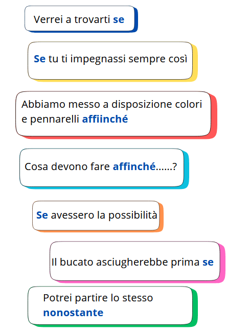 Completa tu! costruendo una seconda frase che contenga un verbo adatto. Colorate poi in giallo i verbi espressi al modo indicativo, condizionale e congiuntivo.