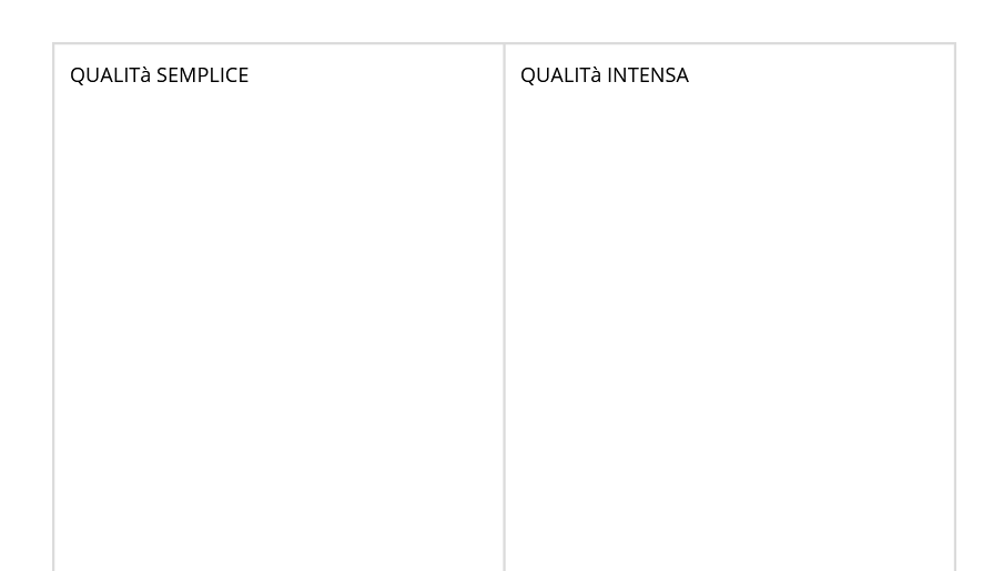 Ora provate a classificarli in aggettivi che indicano soltanto la qualità e aggettivi che ne definiscono anche l’intensità, confrontandola, oppure esprimendola al suo massimo grado. Dovrete scrivere anche quelli trovati dagli altri tavoli!