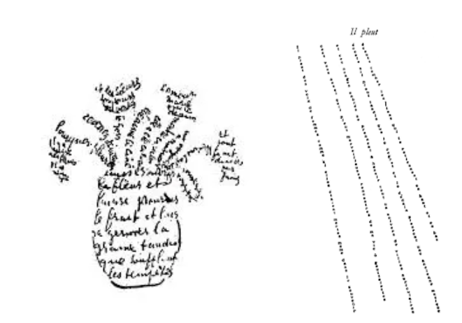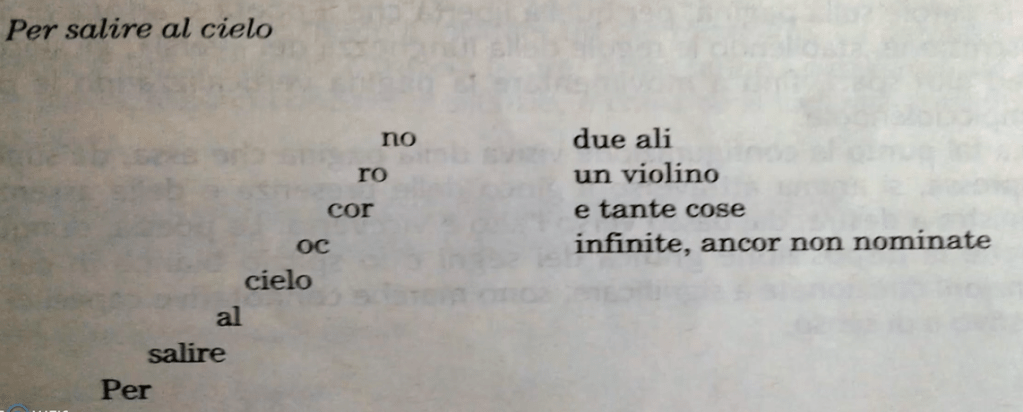 Quando si usa questo modo di scrivere, si sceglie di scrivere una poesia o un pensiero visivi, cioè che si possono guardare come un quadro. Le parole sono scritte per SEGUIRE il disegno che si vuole creare…