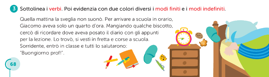 Andiamo ora ad analizzare i verbi dell’es. 3 di pag. 68 della vostra Grammatica GIUNTI – Amica Parola 5, classificandoli in finiti e indefiniti!