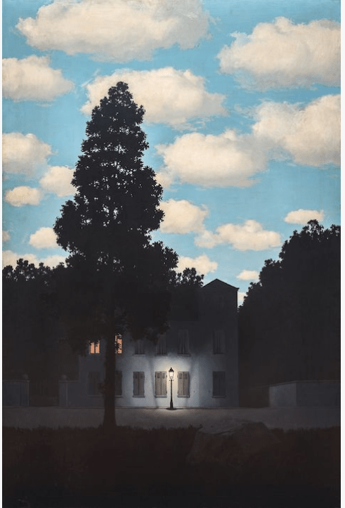 Dal bellissimo incontro con la scrittrice Marie Noelle Reniero e dallo spunto di scrittura che vi ha lasciato, immergiamoci nel quadro di Magritte, L’impero della luce.