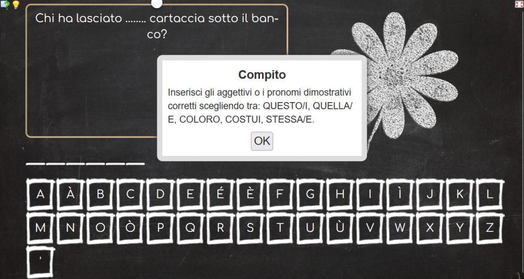 Poi CLICCATE QUI per giocare ancora. Scrivete le frasi sul quaderno completandole con il dimostrativo corretto. Scrivete sopra P se si tratta di un pronome e A se si tratta di un aggettivo.